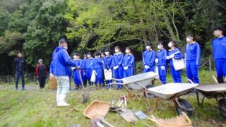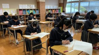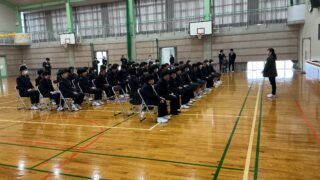さて、今年度の阿武中学校ですが、生徒の行動目標として「阿武中village(美・礼・時)」「(美)真心をこめて黙って清掃10分間」「(礼)笑顔で3m(前)あいさつ」「(時)2分前行動、1分前集合」の継続に取り組んでまいります。また、