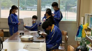 春の人事異動で、新たに防府市立国府中学校から藤本将義教頭先生、萩市立萩東中学校から前田康太先生、新規採用で山口奈々先生、高等学校での勤務経験が豊富な江山優先生を迎え、阿武中学校は一段と若返り、これまで以上に活力溢れる教育活動が実践できる予感がしております。