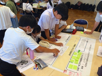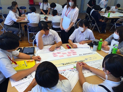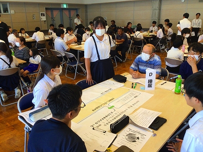 7月10日(木) 小中合同の学校保健安全委員会(兼地域連携教育ベースアップ研修会)が行われました!協議題は「小中みんなで語ろう!阿武町っ子の健康づくり!」です。テーマごとに異年齢集団によるグループ協議を行いました。会には網本教育長様、教育庁地域連携教育推進課の川上主査様、学校医である河野通裕先生、岡崎英紀先生、学校歯科医である和田幸子先生が来校され、ご指導をいただきました。参加した小学6年生、中学3年生、PTA保護者の皆様、学校運営協議会の皆様による大変活発な意見交換と熟議が行われ、とても意義のある素晴らしい会となりました!