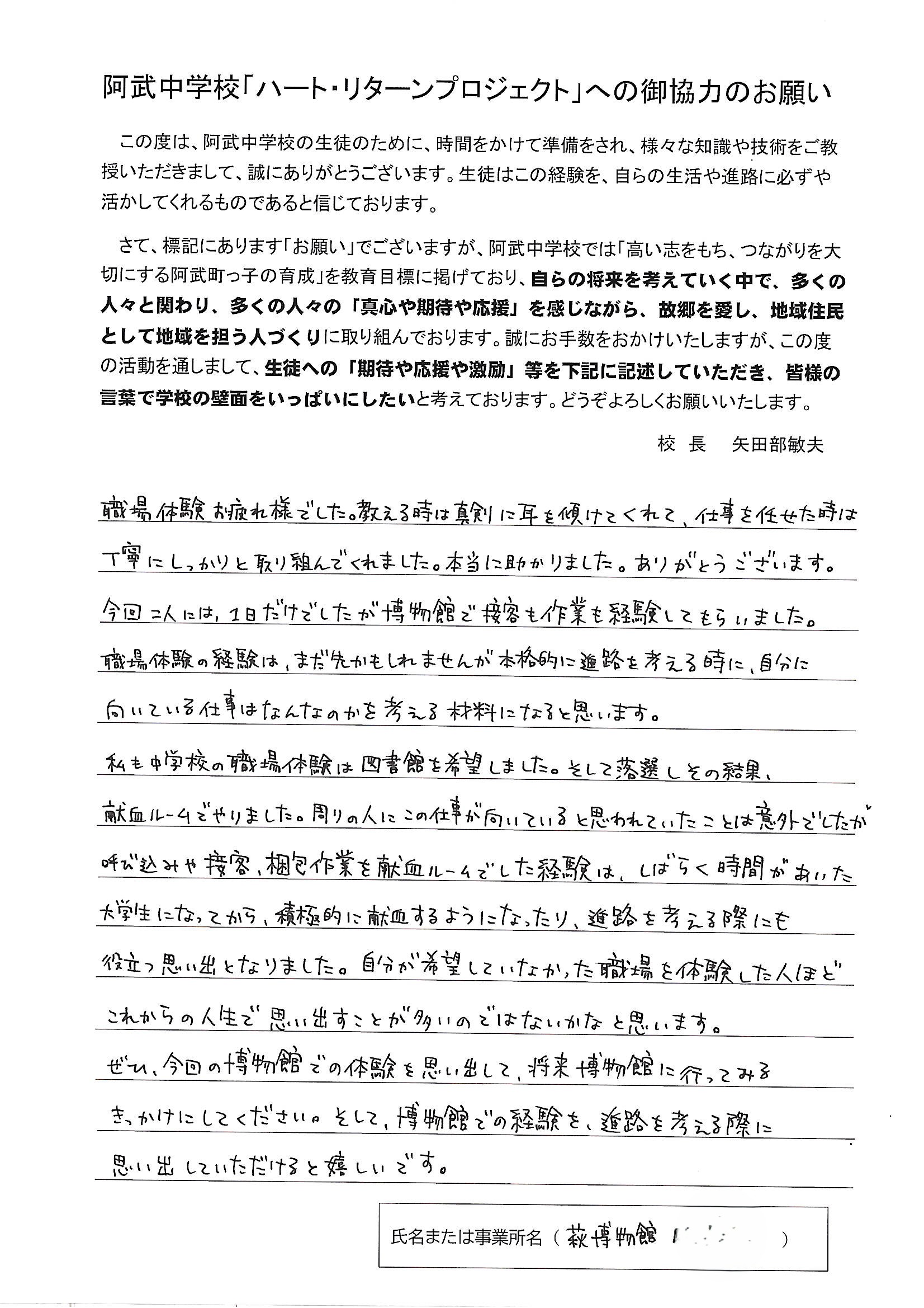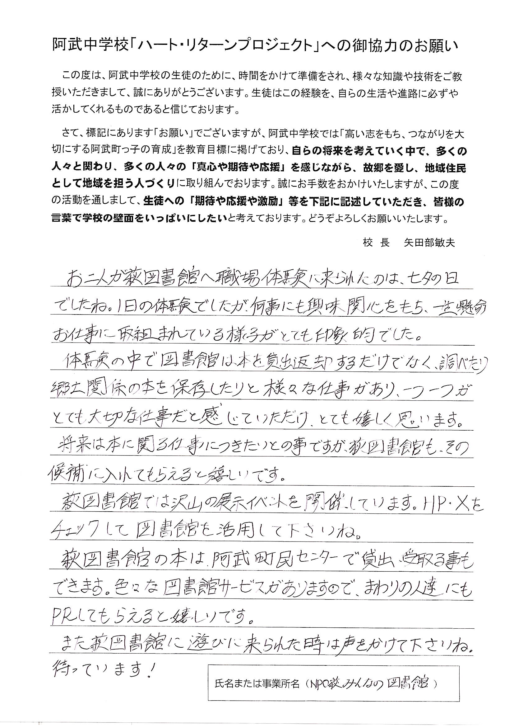 本校の取組「ハート・リターンプロジェクト」で地域の職場の皆様から心の温まる「ハート」をリターンしていただきました!ありがとうございました!