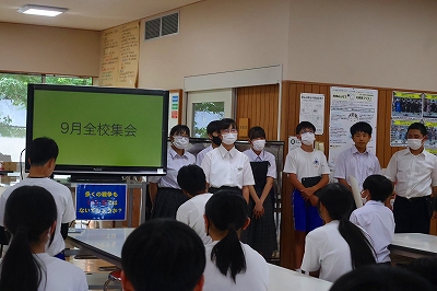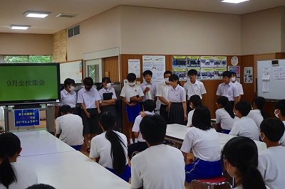 学校生活の様子本校ならではの取組😄子どもが地域の先生プロジェクト(防災学習)😄 9月2日(火) 9月の全校集会が行われ、生徒会による「熊本被災地」現地研修会の報告等が行われました! 学校生活の様子 2025.09.03 9月2日(火) 9月の全校集会が行われ、生徒会による「熊本被災地」現地研修会の報告等が行われました!