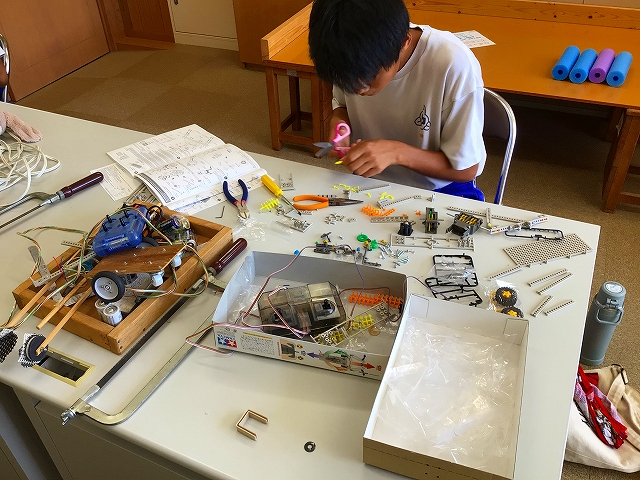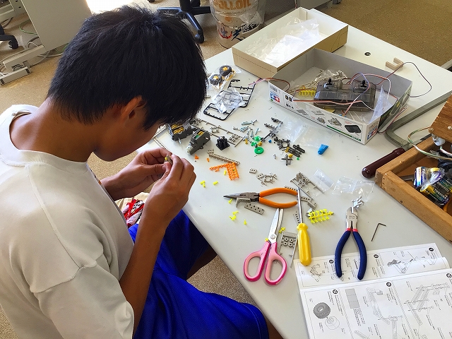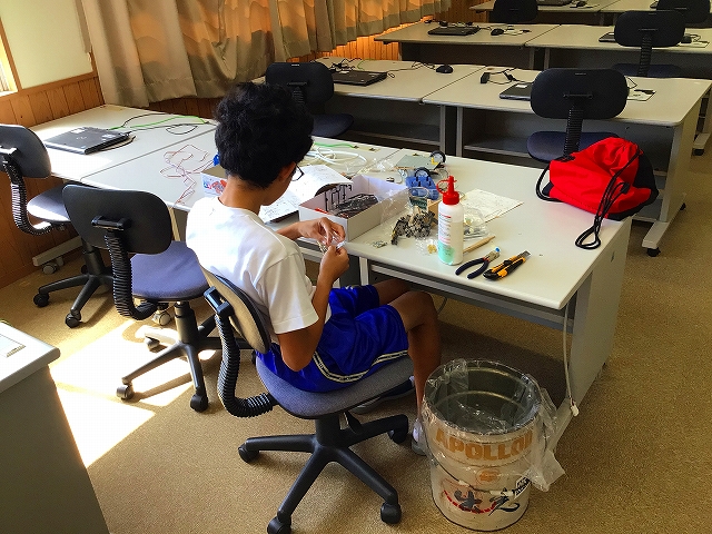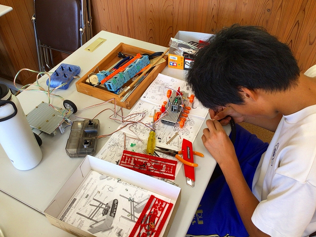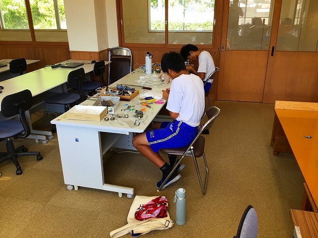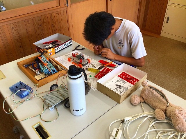 9月6日(土) 山口県中学生ロボコンに参加するためロボット製作奮闘中です!県大会は11月9日(日)に山口市の山口情報芸術センターで開催されます!阿武中学校は学校史上初参加をします。3名の生徒が奮闘中です!