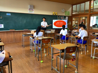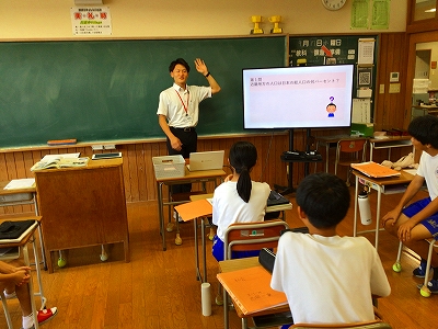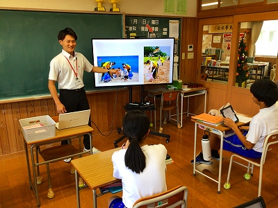 学校生活の様子只今、教育実習生の方が教育実習中です!プロフィールを紹介します。名前は手嶋優斗(てしま ゆうと)さん 佐賀大学の4年生です。専門は社会科です。周南市のご出身です。高校までは水泳部、大学ではラグビー部!好きな食べ物は「まぐろ」「さつまいもの天ぷら」好きなことは「ドライブ」「海に行くこと」だそうです!ナイスガイです!(校長談)。よろしくお願いいたします!26日(金)までです。